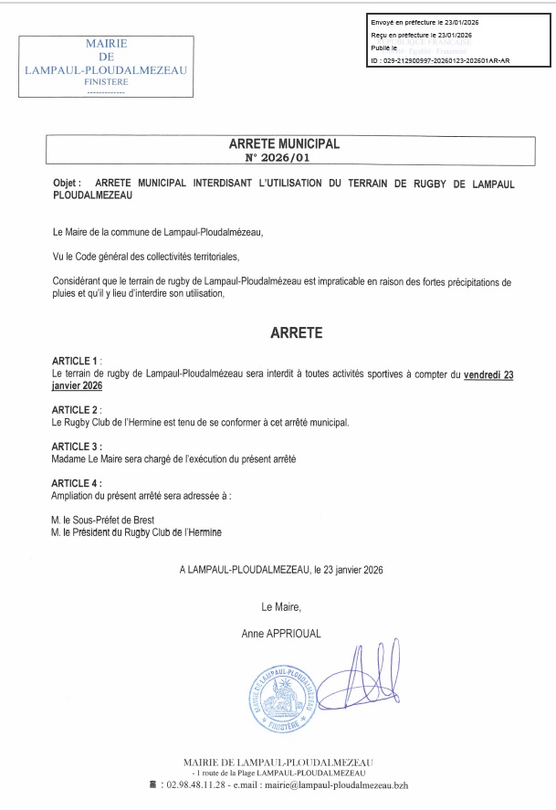 Arrêté municipal interdisant l’utilisation du terrain de rugby