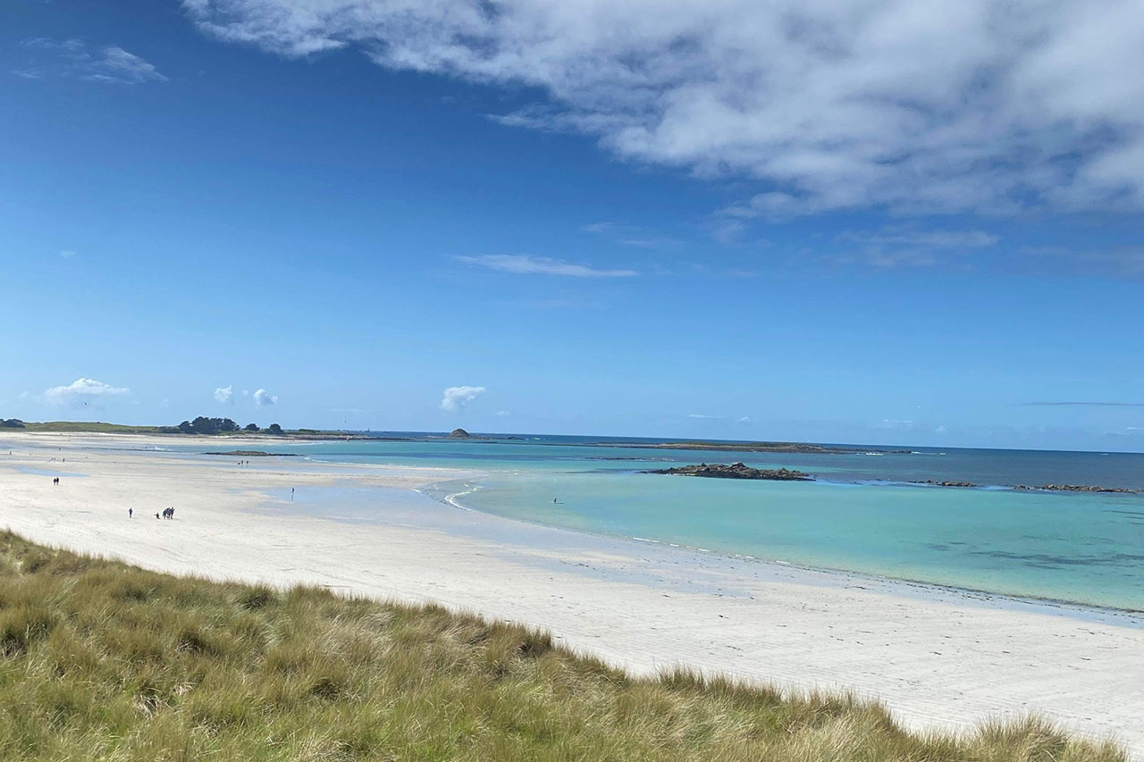 Cette plage, typique de la côte des Abers, se distingue par son ambiance sauvage et apaisante. Protégée des grandes foules, elle séduit par son étendue de sable fin, bordée de dunes tapissées d’oyats et de plantes locales.